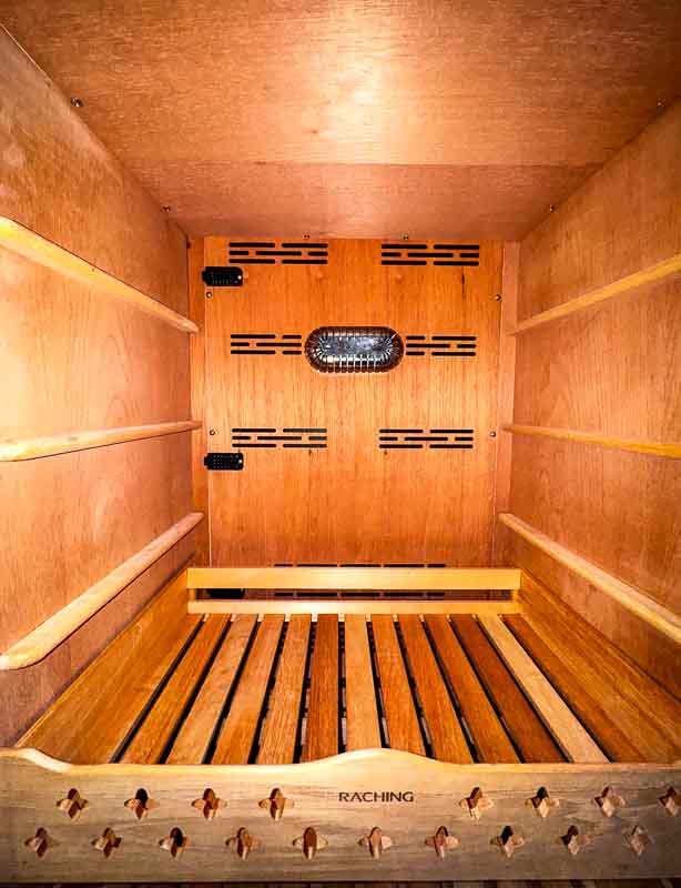 Beim Kauf eines Zigarrenladens ist es wichtig, auf das Aussehen und die Qualität des spanischen Zedernholzes zu achten. Vergewissern Sie sich, dass das Holz aus einer zuverlässigen Quelle stammt und achten Sie auf seinen Geruch und seine Textur. Am besten riechen Sie die Zedernholzplanke aus der Nähe. Bei einem Raching Humidor in unserem Ausstellungsraum riechen Sie sofort, dass diese elektrischen Zigarrenschränke aus echtem spanischen Zedernholz gefertigt sind. Ein guter Zigarrenschrank ist solide gebaut und hat eine dicht schließende Tür oder einen Deckel. Wählen Sie eine Größe, die zu Ihrer Sammlung passt, und achten Sie auf die Verarbeitung. Weitere Tipps finden Sie in unserem „Ultimative Anleitung zur Auswahl des perfekten elektrischen Humidors für die Lagerung Ihrer Zigarren“.
